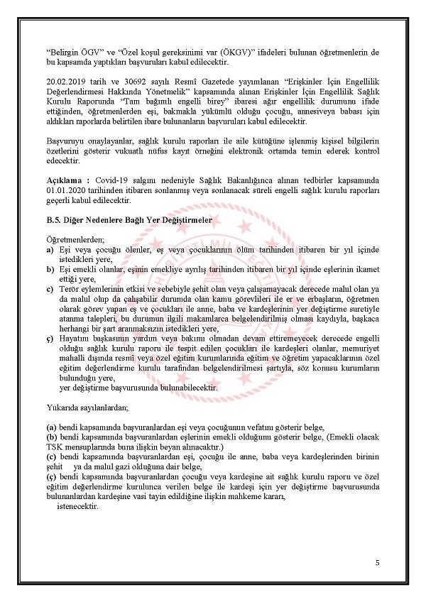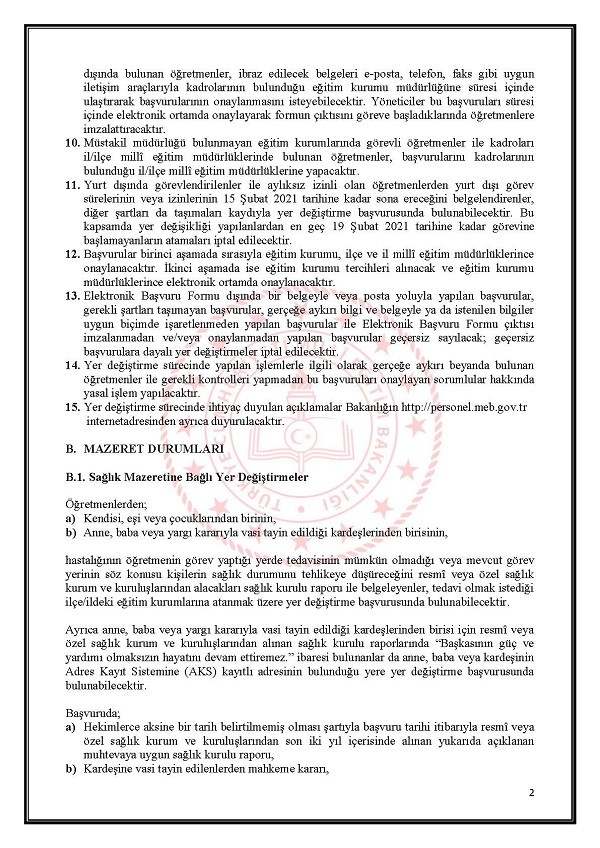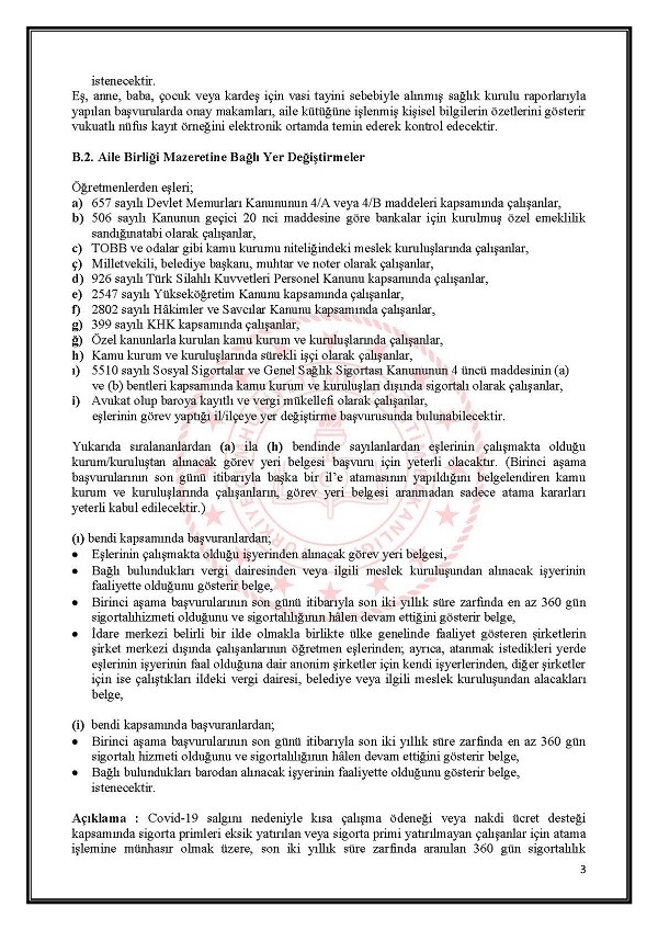 Büyükşehirlerde ikamet adresi dışında çalışanlar, ikametlerinin olduğu ilçeye mazeret tayini isteyebiliyorlar mı? Kılavuzdaki