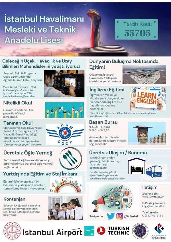 İstanbul Havalimanı Mesleki ve Teknik Anadolu Lisesi, yeni eğitim öğretim yılında öğrenci kabulüne başlıyor.