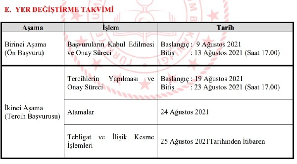Kontenjan ve muhtemelen boşalacak yerler listesi ikinci aşamada yayınlanıyor