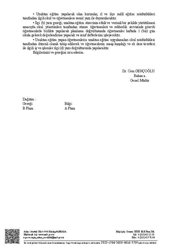uzaktan egitim yapan ogretmenlerin de,haftada bir gun okula gitme zorunlulugu da kaldirilmali.Ogretmenlerinize guvenin lutfen.