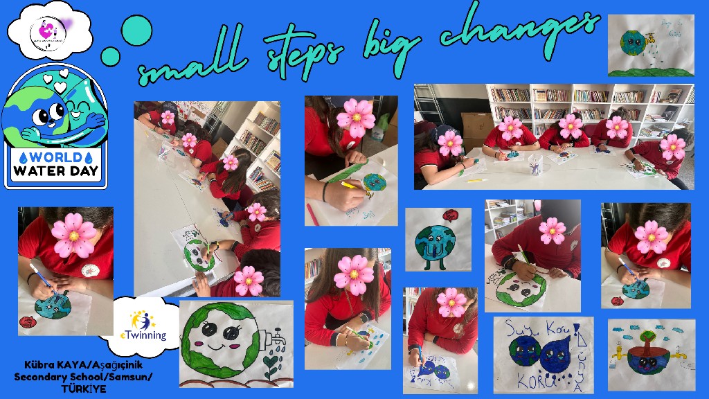 22 Mart Dünya Su Günü, Small Steps, Big Changes eTwinning projesi kapsamında Kübra Kaya öğretmenimiz rehberliğinde okulumuzda farkındalık dolu etkinliklerle kutlandı. Etkinliklerde öğrencilerimiz suyun önemi, bilinçli su tüketimi ve sürdürülebilir yaşam hakkında bilgilendirildi.