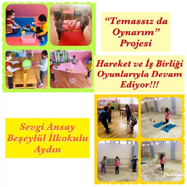 Bir eTwinning projesi olan ve 2020 yılı Kasım ayından bu yana 10 öğretmen ve öğrencilerinin katılımıyla devam eden, "Temassız da Oynarım" isimli projemiz; özellikle içinde bulunduğumuz pandemi döneminde öğrencilerin oyun temalı olarak bilişsel, motor, sosyal, duygusal, dil gelişimlerine ve özbakım becerilerine oldukça katkı sağlamaktadır.