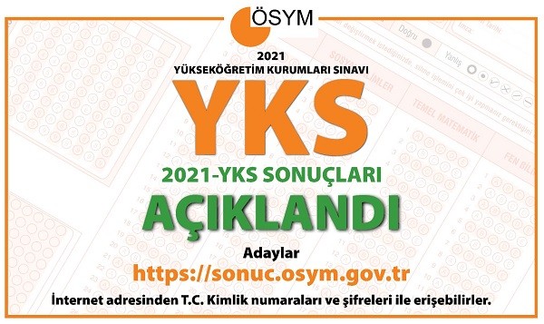 26-27 Haziran 2021 tarihlerinde gerçekleştirilen Yükseköğretim Kurumları Sınavı (2021-YKS) sonuçları http://sonuc.osym.gov.tr sayfasından açıklandı.